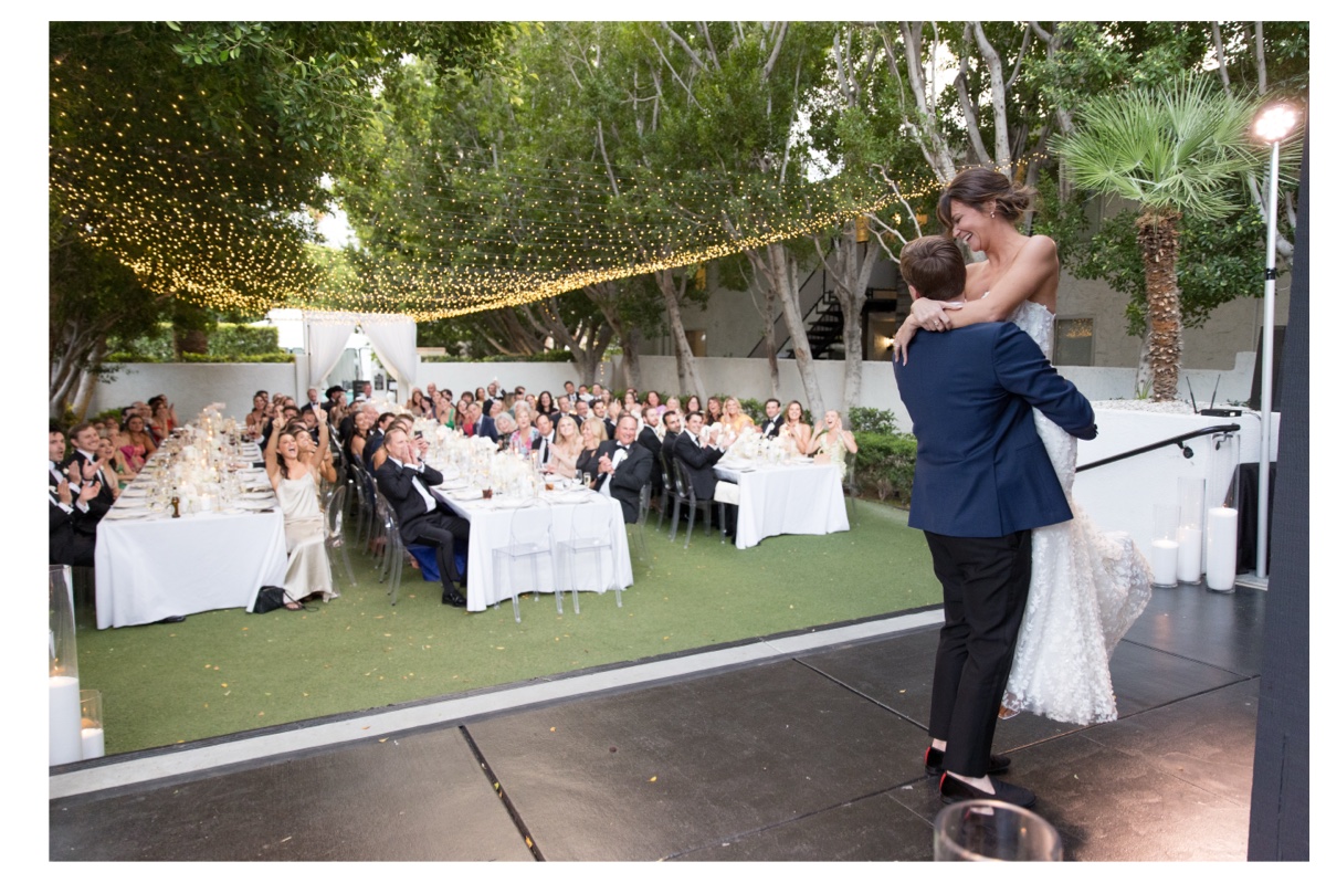 reception at the avalon hotel palm springs wedding bride and groom walking through their wedding reception that was filled with white and champagne florals. bride and groom kissing at their avalon hotel wedding reception. martinis and a saxophone player at this avalon hotel wedding